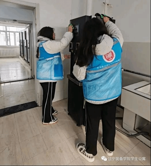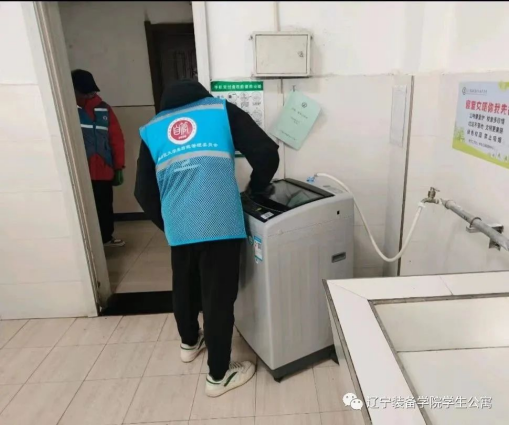 2023年12月8日13:00,校自管会全体成员在学生公寓A座前广场集合,随后分成四组成员分别进行洗衣机、直饮水机擦拭清洁、宣传展板擦拭清洁工作。