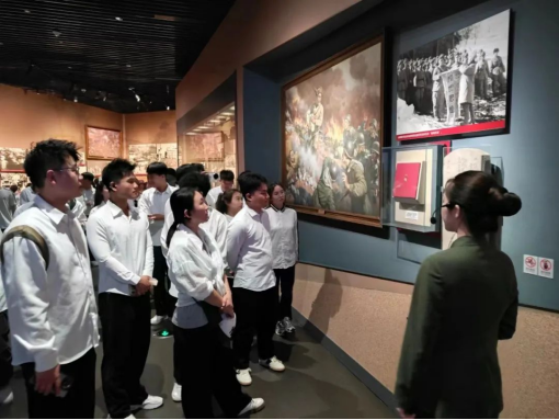“雄赳赳,气昂昂,跨过鸭绿江”,伴随着《中国人民志愿军战歌》,团员青年来到我校共建的思想政治教育实践教学基地——抗美援朝纪念馆进行学习参观。在讲解员的引导下,先后参观了抗美援朝战争厅、运动厅、友谊厅和全景画馆等,大家仔细观看一张张感人的照片、一件件老旧斑驳的物品,共同走近那段峥嵘岁月,感受并学习革命先辈英勇顽强、舍生忘死的革命精神。上甘岭、长津湖、松骨峰,爬冰卧雪、烈火焚烧、忍饥挨饿,志愿军战士们不畏艰难,表现出敢于压倒一切敌人的态势,体现了不被任何困难所征服的英雄气概,志愿军战士们付出巨大牺牲,最终取得了抗美援朝的伟大胜利。