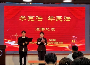 点亮宪法之光,照亮强国之路。为深入学习贯彻习近平法治思想,推动宪法宣传教育常态化长效化,培养青年学生的宪法意识,结合校园(社团)文化艺术节,由校团委主办,法律政协提案社团承办的“学宪法,讲宪法”演讲比赛,于6月25日在学校路演厅进行。
